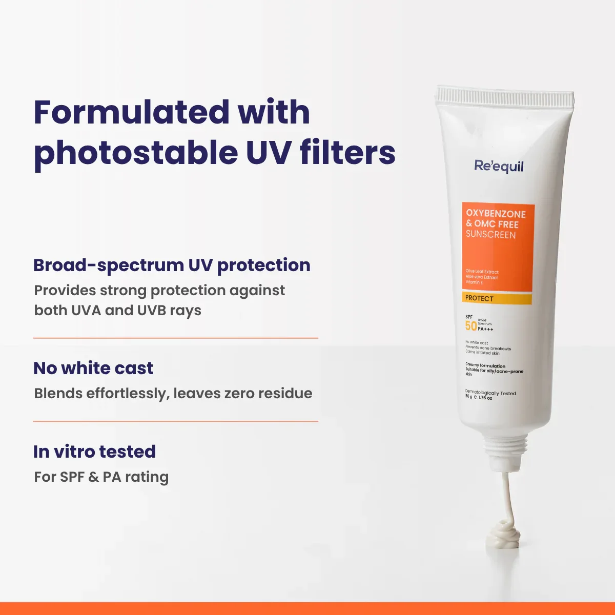 Oxybenzone & OMC Free Sunscreen is a lotion-based formulation with PA+++ Rating (highest grade for UVA protection) and SPF 50 (blocks 98% of UVB Rays). Formulated for oily and acne-prone skin, it has organic sunscreen filters, is non-comedogenic, & does not cause acne breakouts. This sunscreen offers long-lasting sun protection and helps prevent photo-ageing, hyperpigmentation, and dullness.